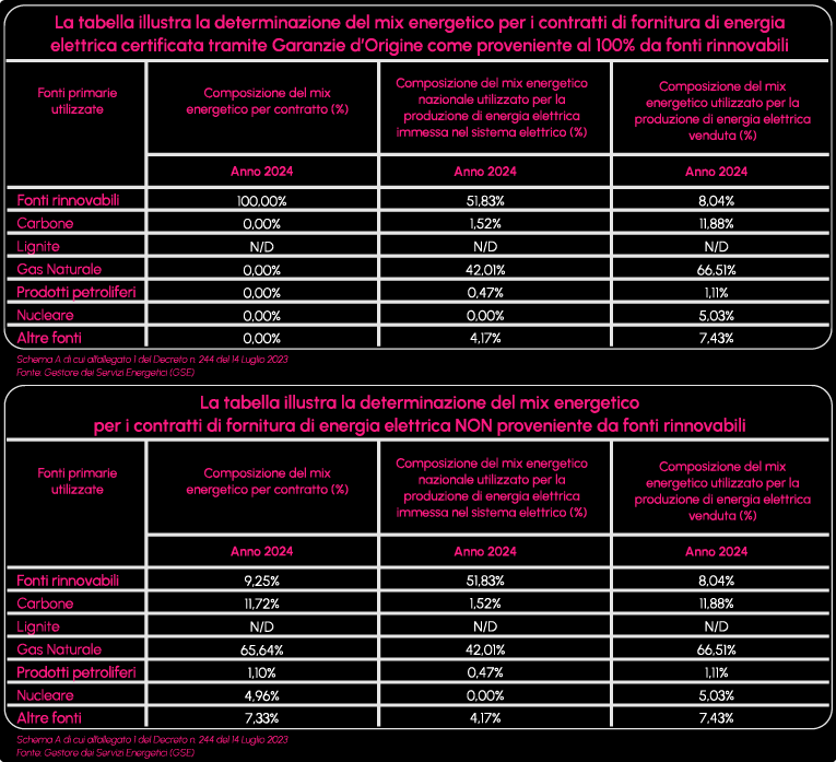 Per consultare il fuel mix clicca sul seguente link: https://www.gse.it/servizi-per-te/fonti-rinnovabili/fuel-mix/documenti, per Mix Energetico POP! Energy brand di Argos clicca qui.